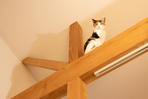 コウメたん。ホントに梁の上が好き。