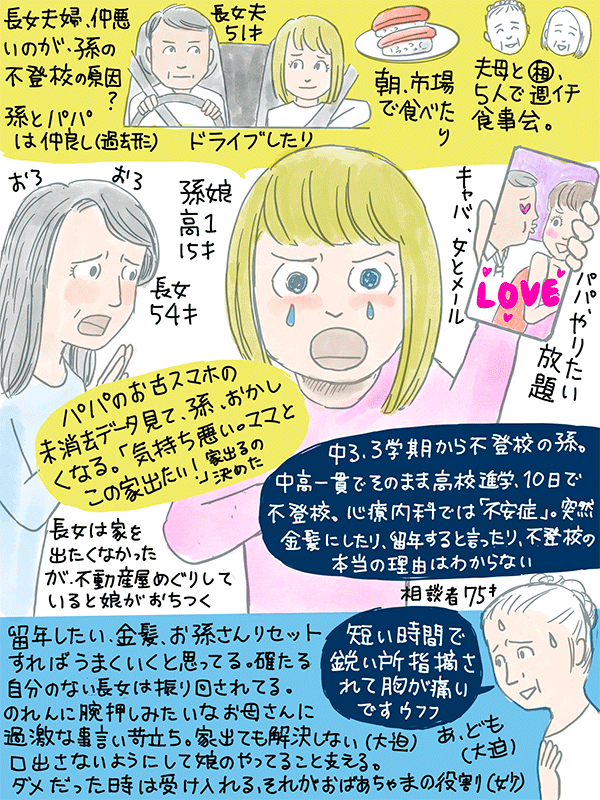 長女の娘15才が中三3学期から不登校、長女夫婦の仲が悪いのが原因だと思う。