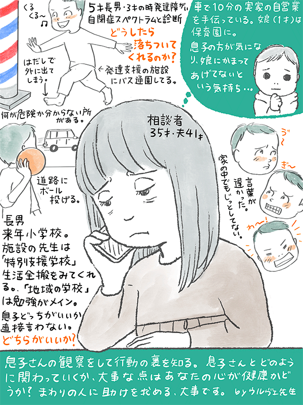 来年から小学校、特別支援学校か地域の学校の支援学級どちらが息子に合っているか、施設の先生が言ってくれないがどちらにしたら?という35歳女性のご相談。