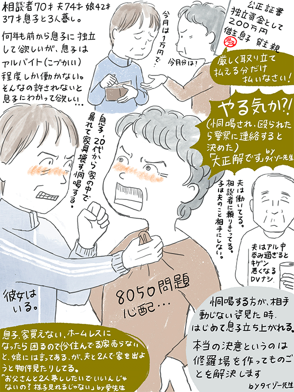 アルバイト程度しか働かず親元でこのまま生活できればいいと思われるがそれは許されないと息子にわかってほしい70才女性のご相談。