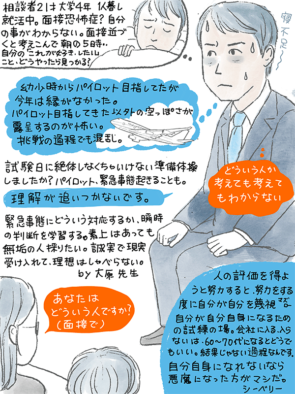 就活で面接控えてる大学4年、面接近づくと1週間くらい前から考え込んで朝の5時、夜眠れなくなった。自分がどういう人か考えても考えてもわからないという21才男性のご相談。