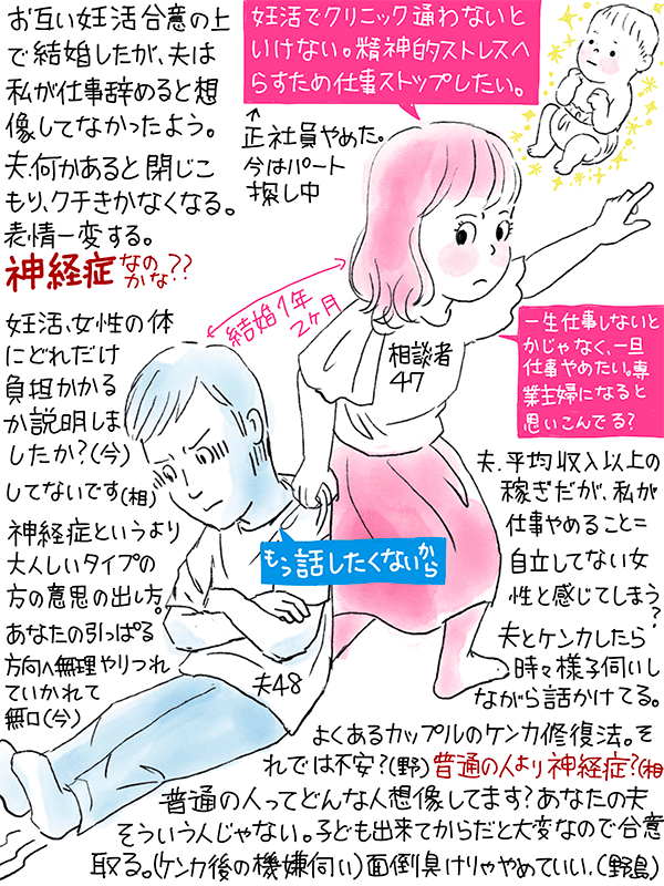 妊活のために仕事を一旦やめたが、夫は私が仕事を辞めることを想像していなかった様子。