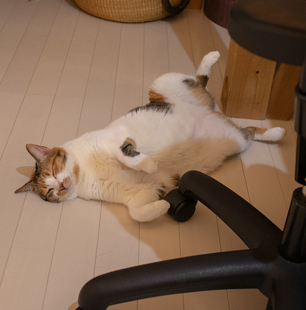 ミケーネたんは相変わらず「へそ天」