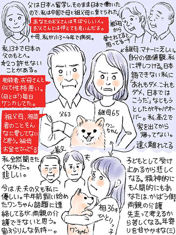 半年前に犬を飼い始め、その話題で関係は改善してきたが介護はできないと思う。