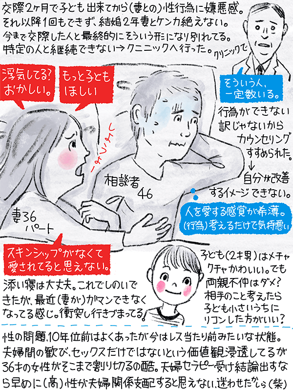 交際2ヶ月で子どもができてから、妻との性行為に嫌悪感、以降一回もしていない。