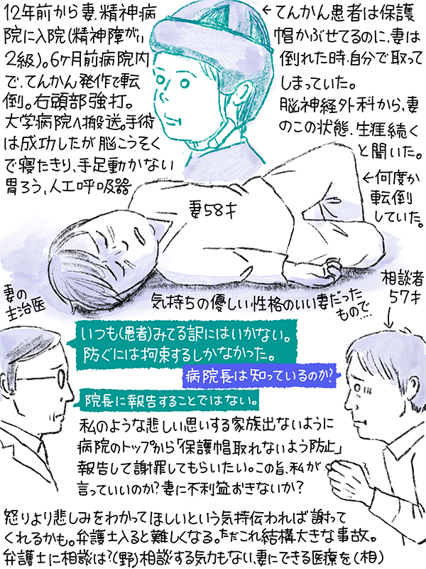 精神病院入院12年の妻が、病院内でてんかんを起こし転倒。