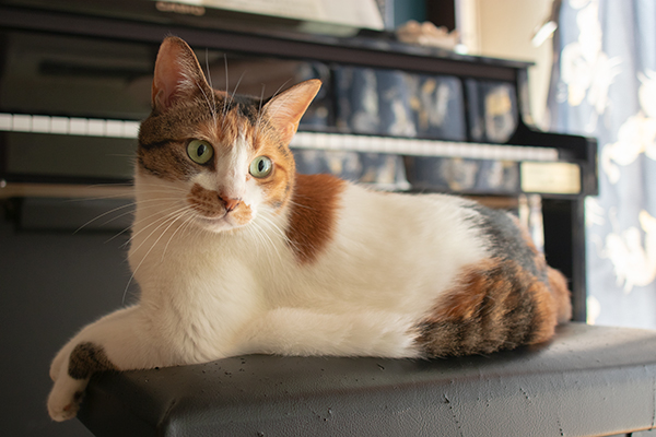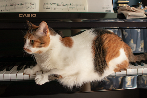 ピアノの椅子に座りたくで練習邪魔するミケーネたん。