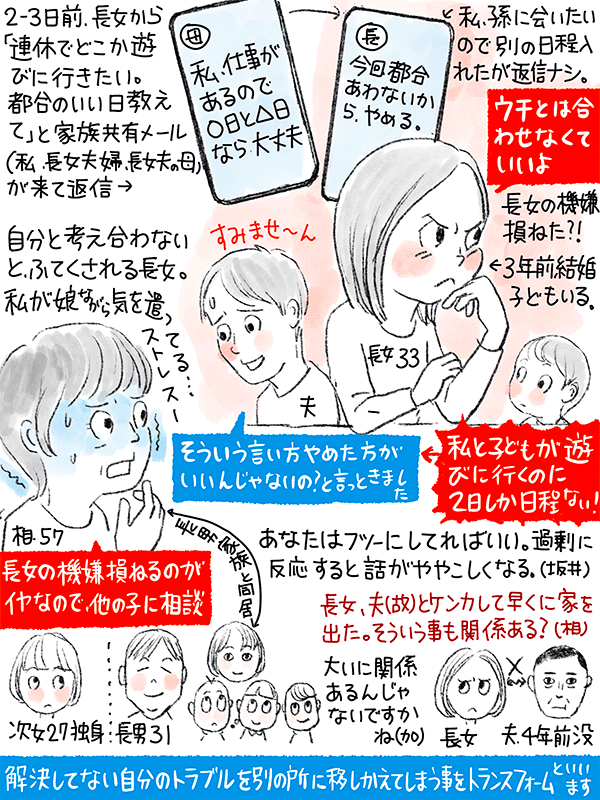 長女とは、他の二人の子(長男、次女)と対応の仕方が変わっちゃって私もストレスという57歳女性のご相談。