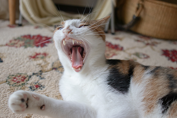 ウチはベランダでなくバルコニー(屋根や庇がない)なので、夏場はカーテン閉めてる。薄暗く猫の瞳が細くならないので、写真写りがちょっとカワイイ。
