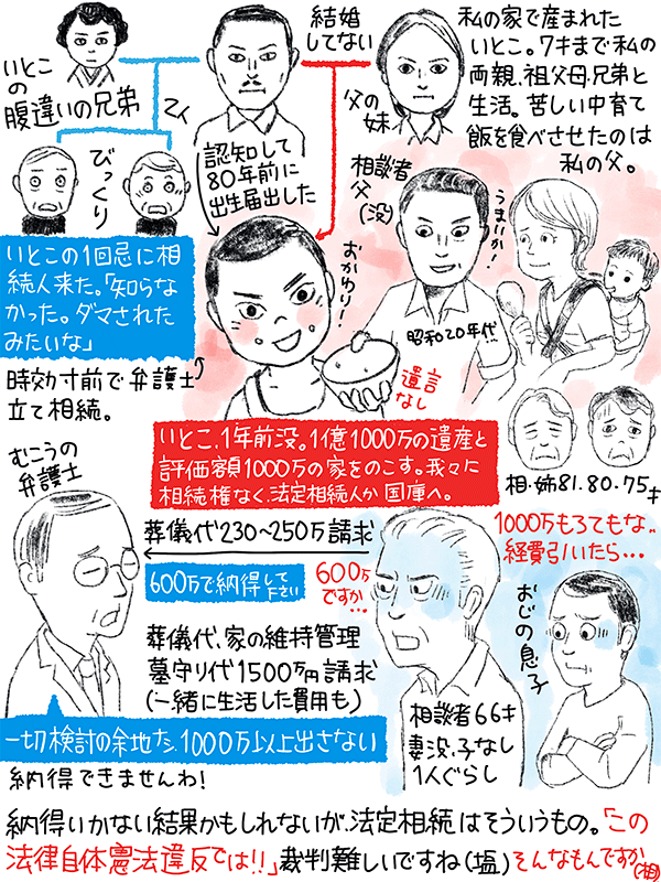 その考慮もなく、向こうの弁護士は葬儀費用250万墓守代含めた1000万円以上こちらに出さないと言っている。納得いかない66歳男性のご相談。