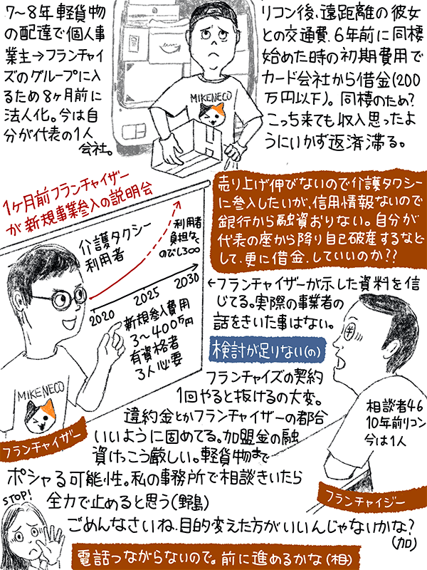 8ヶ月前法人化してフランチャイズのグループに入ったが、思ったように売り上げが伸びない。フランチャイザーの新規事業に参入したいが、自分には返済が滞ってるカードの借金があり銀行から融資が降りない。