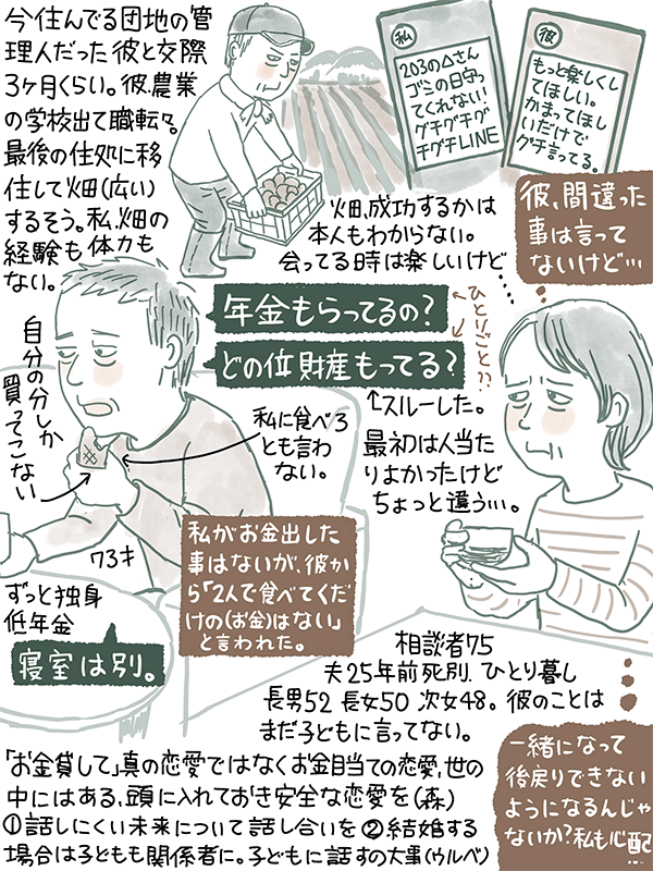 このまま交際続けたいが、ちょっと問題あると思う75歳女性のご相談。