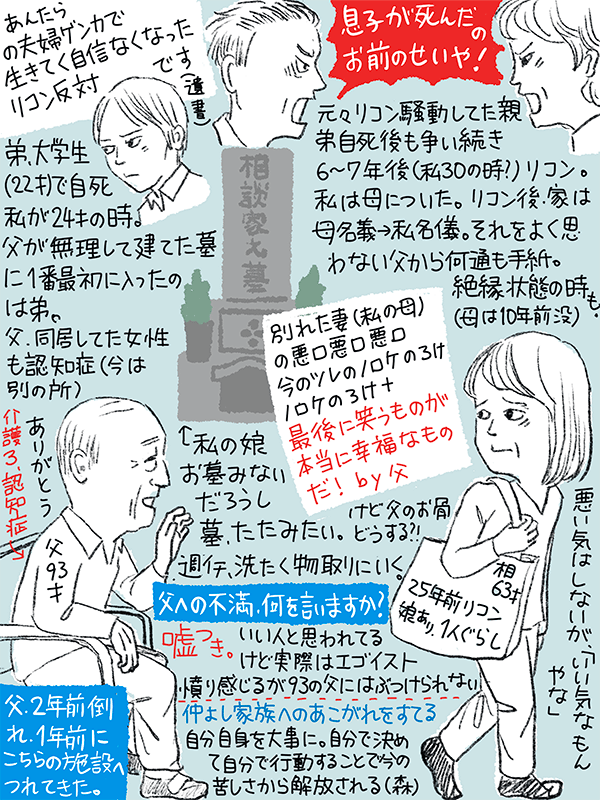 その後、両親は私が30歳の頃離婚した。母側についた私を快く思わなかった父から母の悪口を連ねた手紙を何通も送りつけられ一時は絶縁状態になったが
