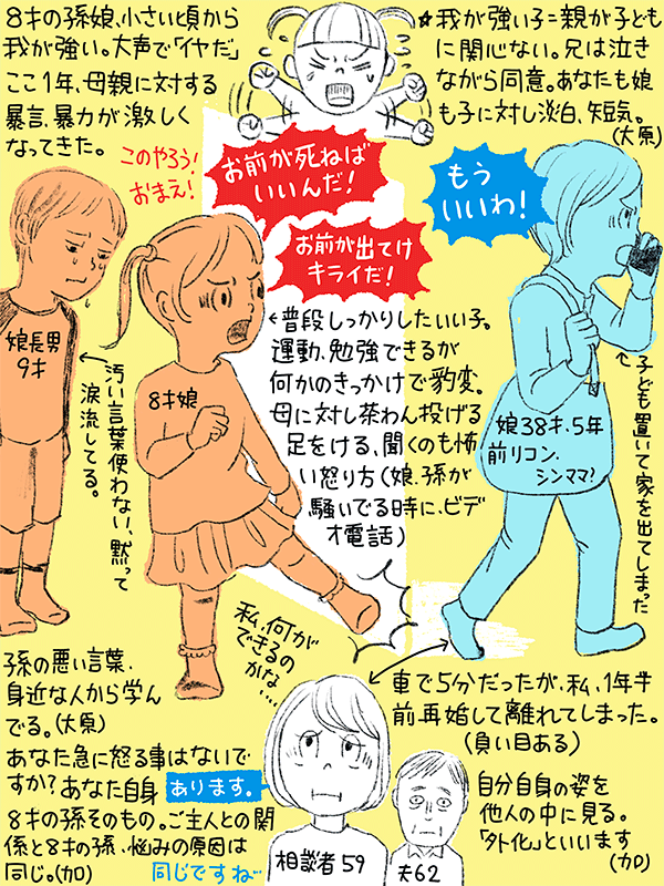 私の娘と、娘長女の関係が心配。普段はとてもいい子の娘長女だが、何かのきっかけでお母さん(娘)に暴言暴力を。ここ1年激しくなってる。