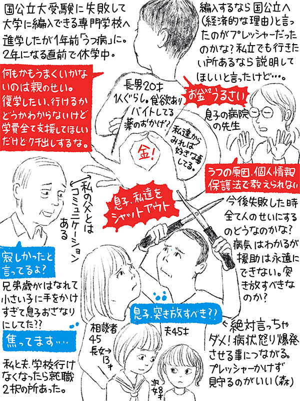 学校、復学したいが行けるかわからないが学費は全て援助してほしい、だけど色んなこと言ってくれるなと息子は言っている。