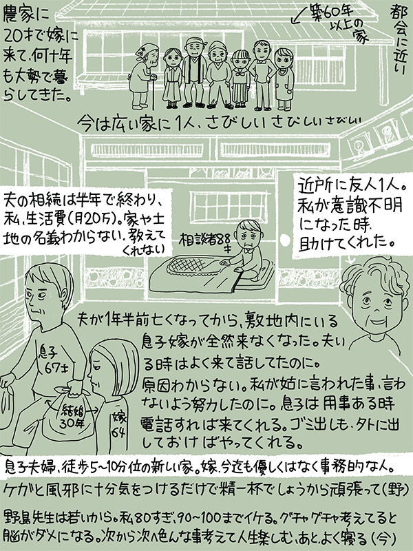 夫が家にいる時は、敷地内の息子嫁が来てよく話をしていたが