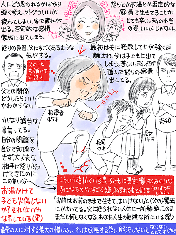家族にあたってる。夫だと反論されるので、子どもに怒りの感情出している。