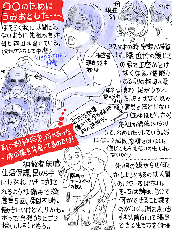 私の精神疾患は何かあった一族の業を背負わされているのではないか?(私が勝手に思ってるだけかもしれないが)という52歳男性(たぶん)(広汎性発達障害)のご相談。