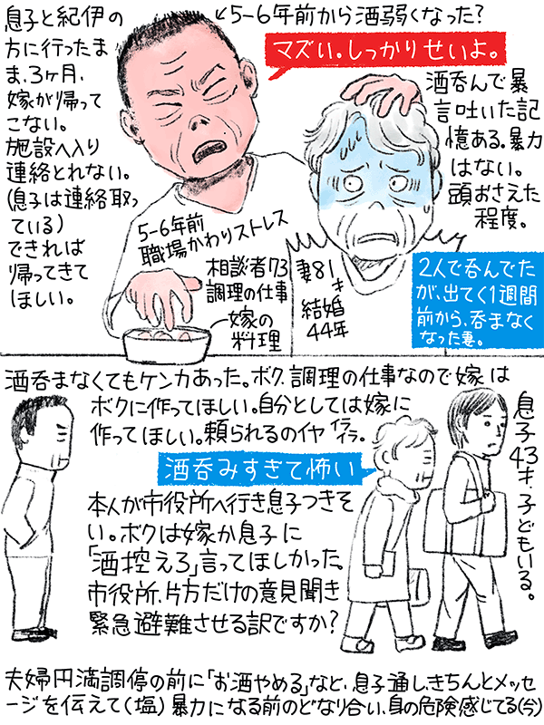 3ヶ月前、嫁が出て行き施設に入っているようだ。連絡が取れない。