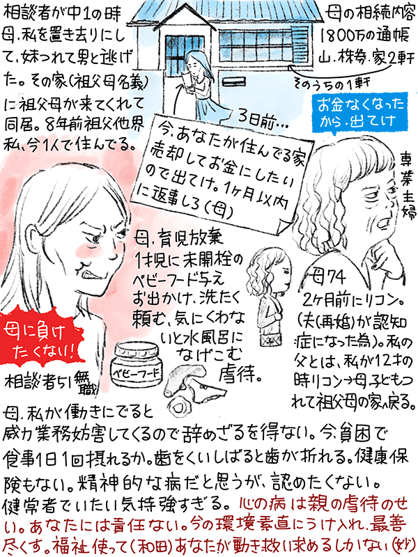 三日前に母からポストに「今いる家を売却したいから出てってくれ」という手紙が。