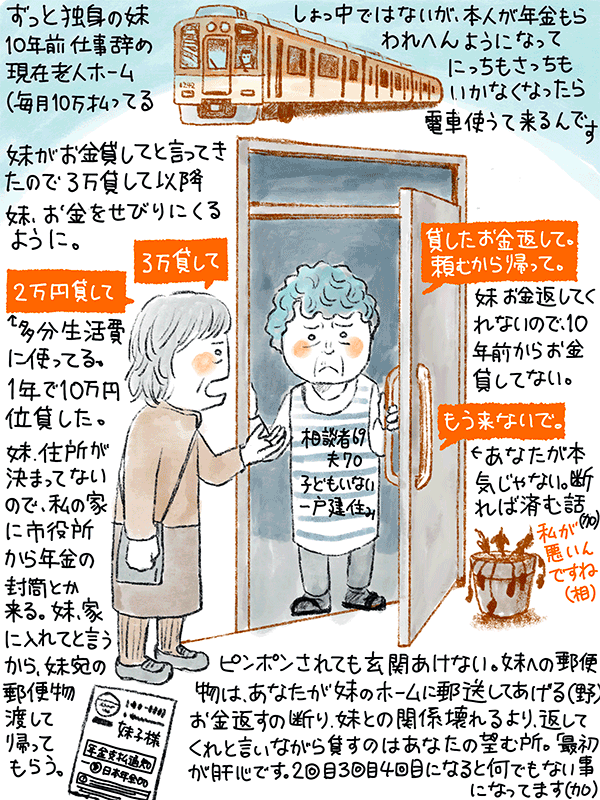 お金返してくれ、頼むから妹に来んといてくれという69歳女性のご相談。