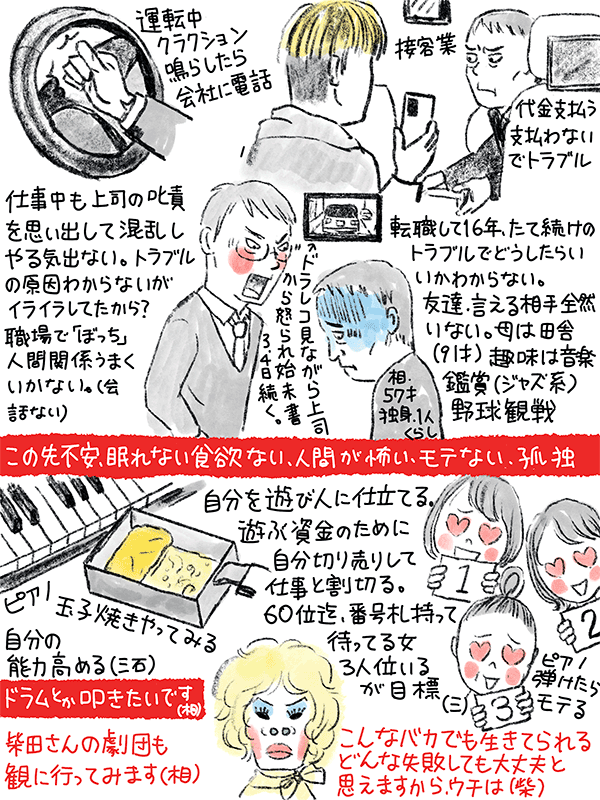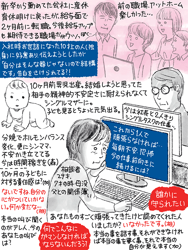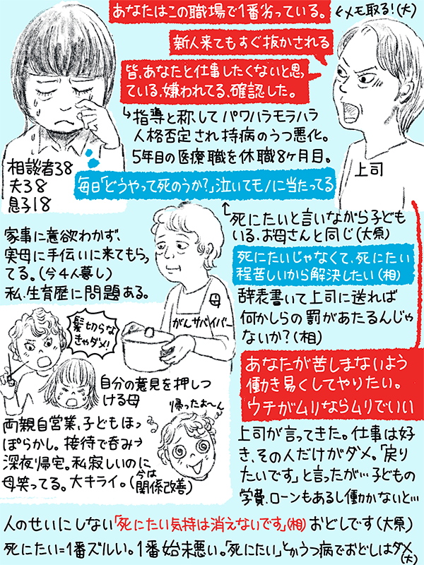 学費もローンもあるので働かなければいけないが、人間関係うまくいかず、毎日死にたいと思っている38歳女性のご相談。