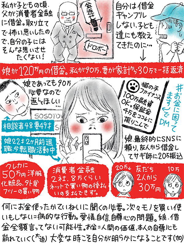 娘が120万借金あることがわかり、私と妻で一括返済した。