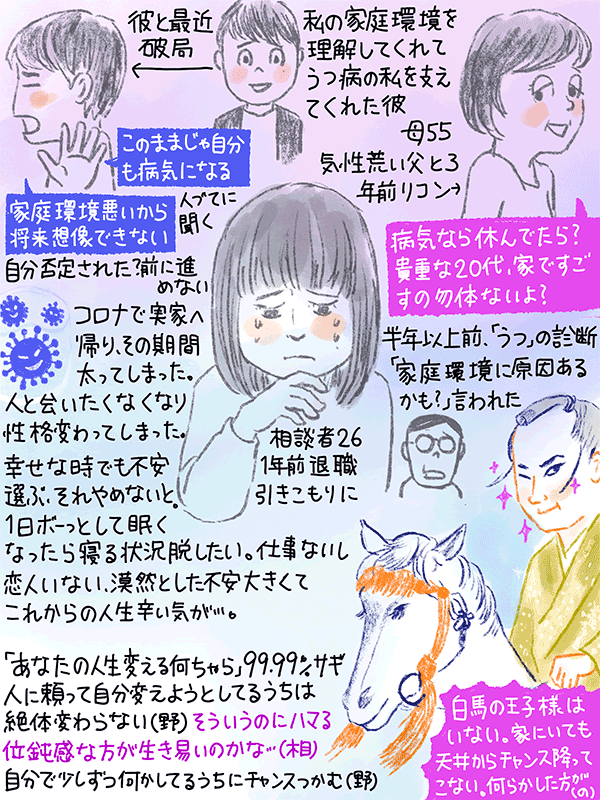 1年前に会社退職し、半年以上前にうつ病と診断。通院などを支えてくれた彼と最近別れてしまった。
