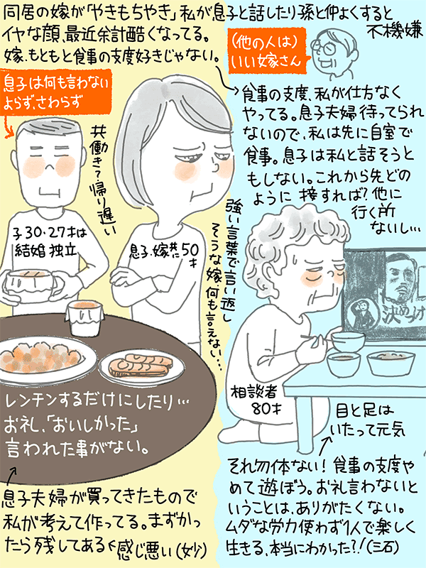 息子夫婦の食事の支度もしているが、お礼や感想を言われた事もない。
