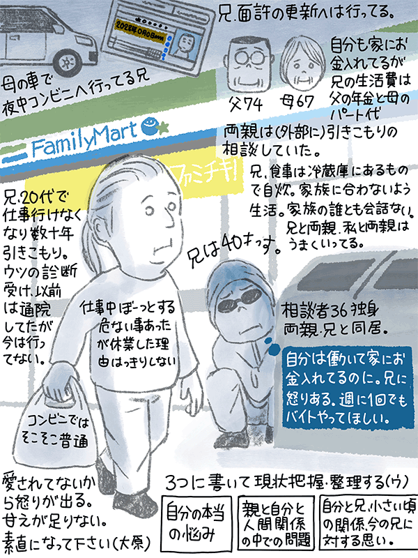 両親は引きこもりの相談に行ったりしてはいた。兄への対応、兄がどう生活していけばいいか?という36歳男性のご相談。