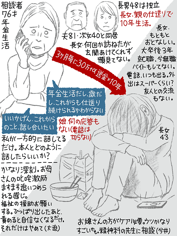 43歳の長女は親の仕送りで暮らしている。(3ヶ月毎に30万円と少し、10年間)