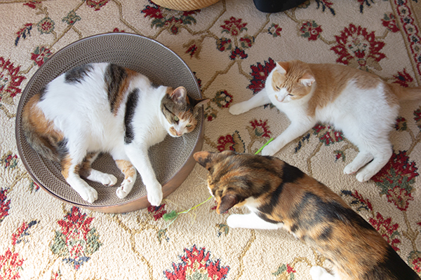 爪とぎ用に買ったのに、ベッド使用として奪い合い。