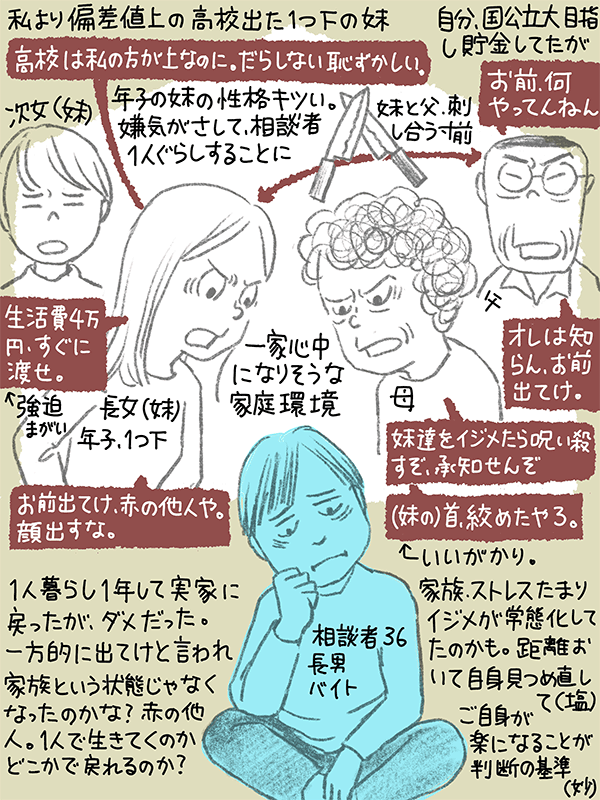 もう家族は赤の他人、一人で生きてくのか、どこかで戻れるのか?という36歳男性のご相談。