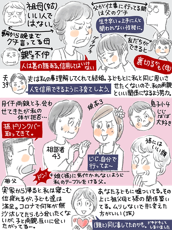 もう両親と会いたくないが、子供達は両親(祖父母)と会いたがっている。どうすれば?という43歳女性のご相談。