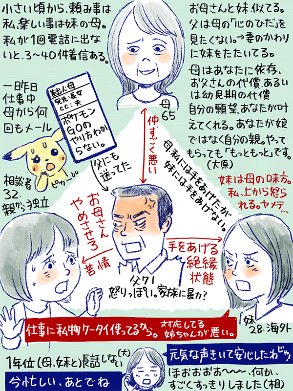 父は怒りっぽく、私が実家を出たあとに妹に暴力をふるったため、父と妹は絶縁状態。