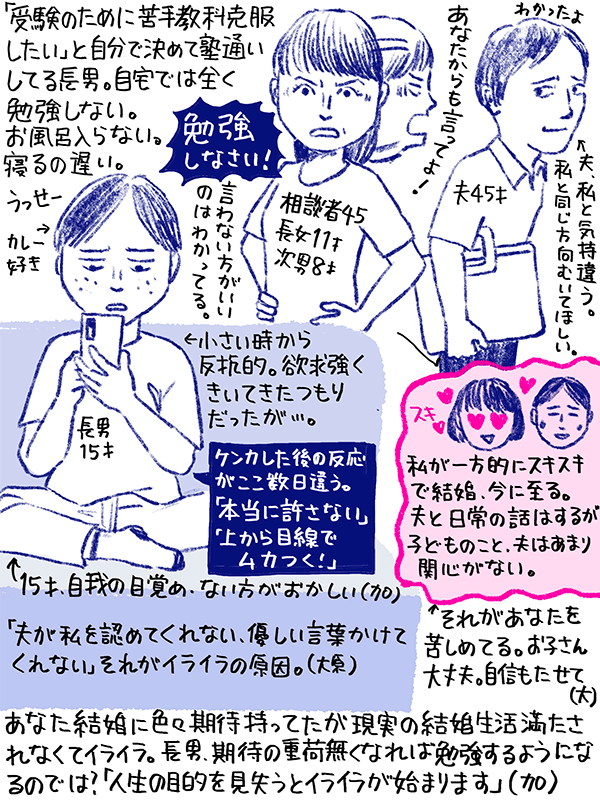 夫は私と考えが違うみたいだし、という45歳女性のご相談。