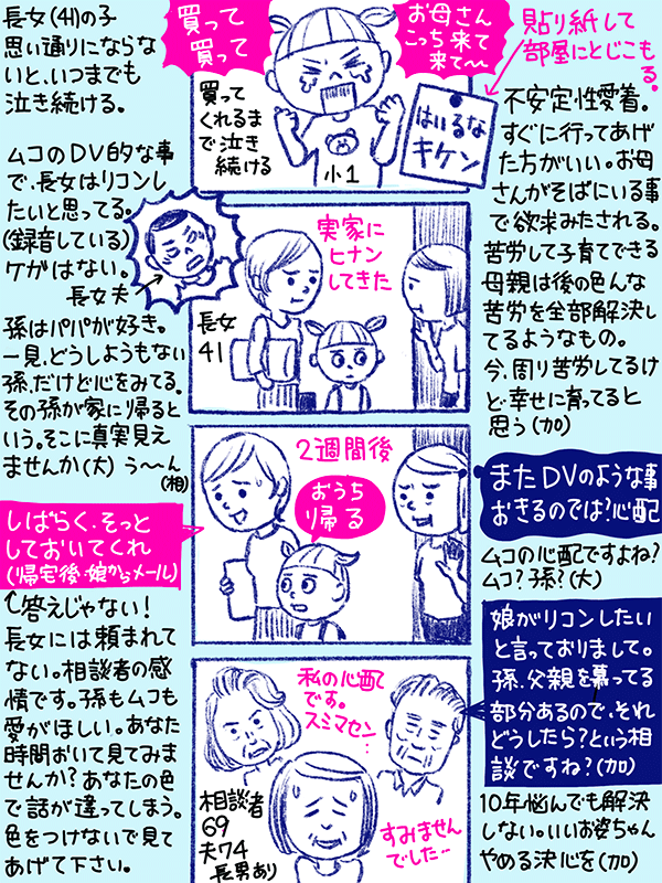 娘が妊娠5ヶ月頃から、電話で私に強い言葉を投げつけてくるように。娘の言葉が全部母に言わないでと思った言葉と同じ。自分はそんな言葉を子どもには言わないようにしてきたのに…という60歳女性のご相談。