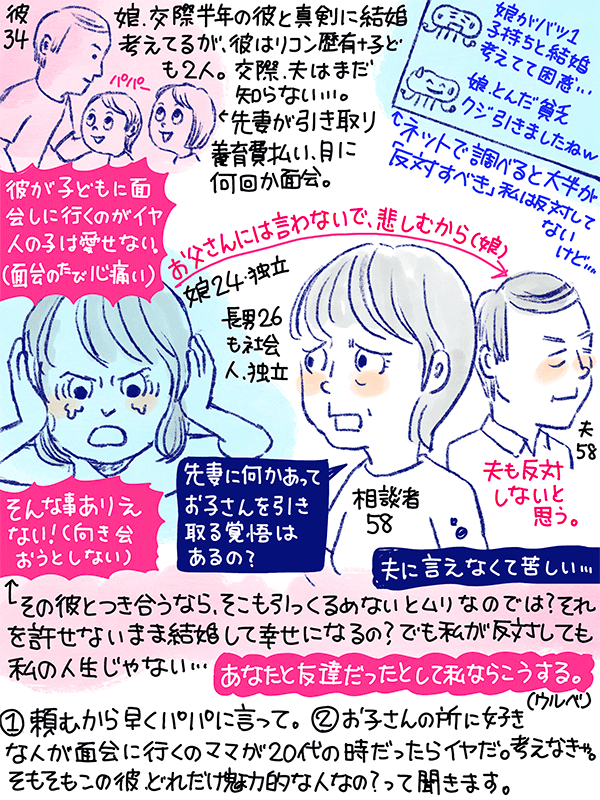 娘が半年前から交際して真剣に結婚を考えてる彼が、離婚歴ありの二人の子持ち。