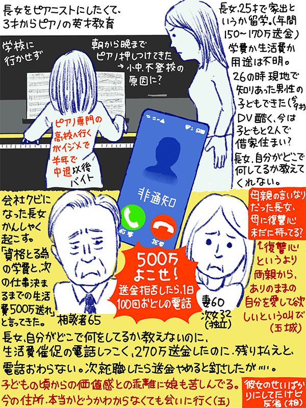 25歳で留学すると言って家を出た長女。26歳で現地で子どもが出来、相手のDVのため今は親子二人で借家住まい。