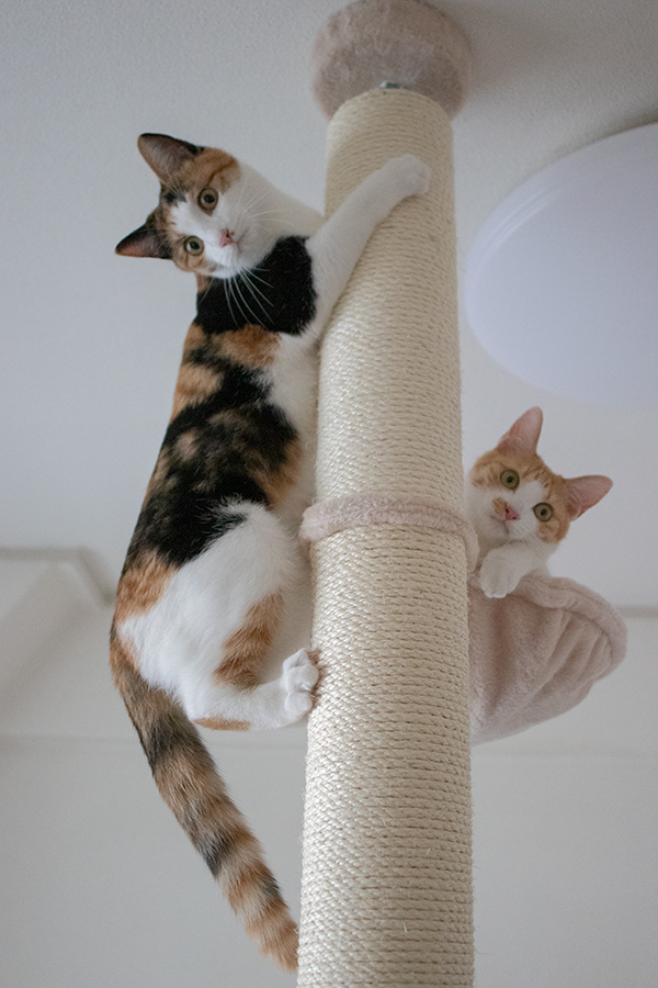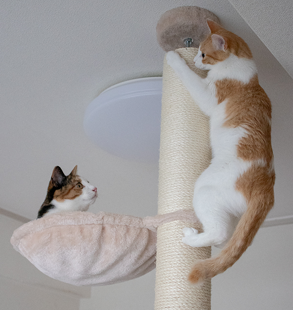先週買った「おうちで木登りタワー」チャイとコウメはよく登る。
