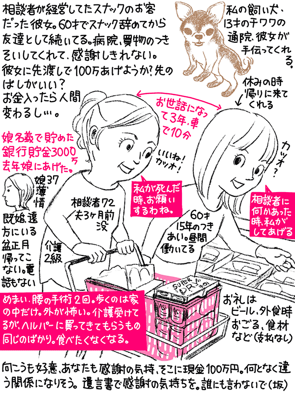 わたしも彼女なら頼れるので、ビールだけでなく100万渡したいが