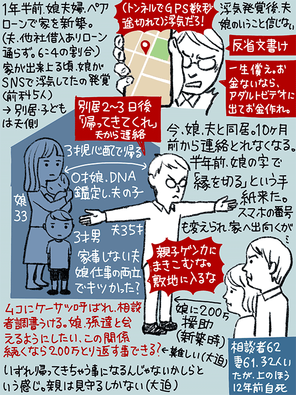 家が出来上がる頃に、娘がSNSで知り合った男性と関係持ったのを娘夫が知ってしまった。