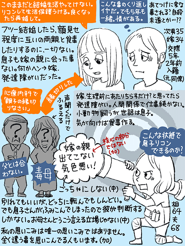 嫁の母は毒親、父とは気が合わないので心療内科の先生に『縁を切りなさい』と言われたので縁を切ったらしい。