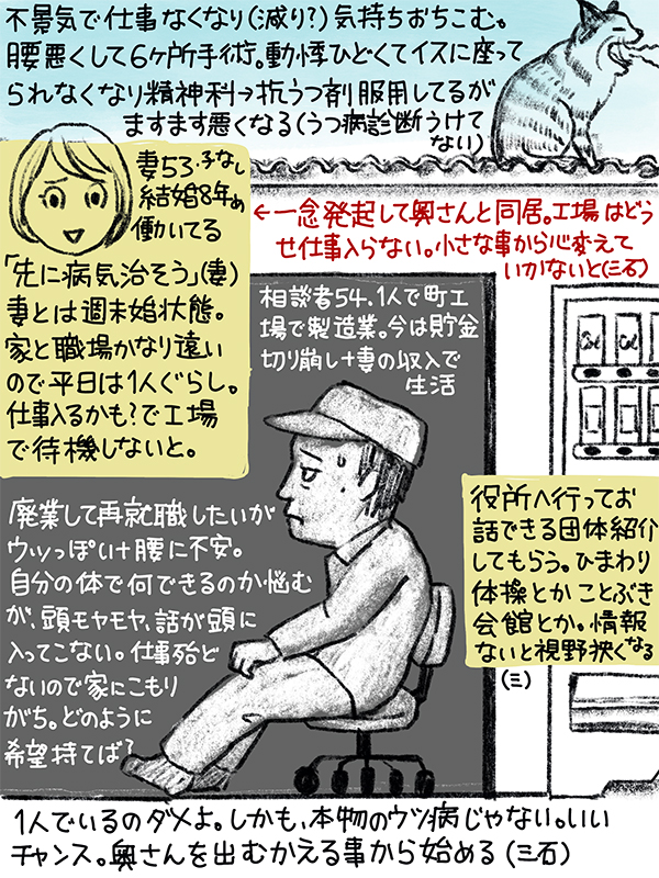 不景気で仕事がなくなり、気持ちが落ち込み体調悪くなった。
