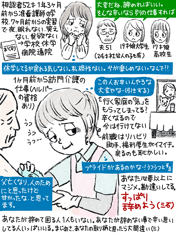 休学中に訪問介護の仕事をしたが、行く家庭の「気」を家に持ち帰ってしまい辛い。どうして、こんなに鬱々としてしまうんだろう?という52歳女性のご相談。