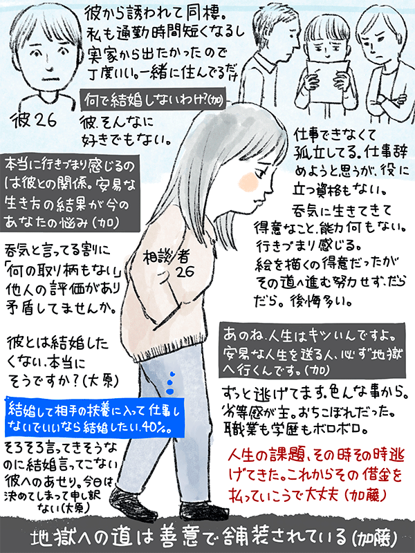 仕事もできないので孤立しており退職しようと思っているが、資格もなくどうやって生きていいのかわからない26歳女性のご相談。