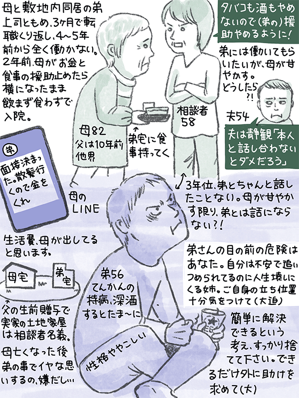 母が甘やかすかぎり、弟とは話にならない?という58歳女性のご相談。