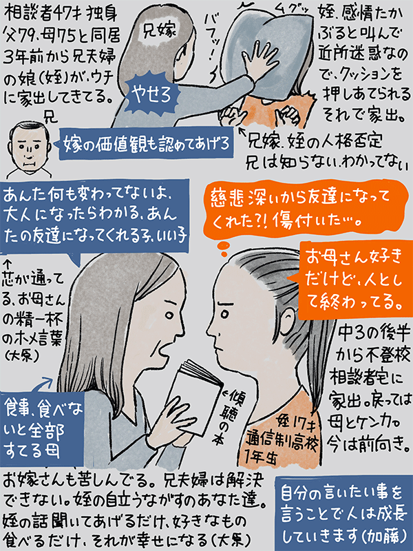 兄夫婦の娘、姪が3年前から相談者両親と相談者が住む家に家出。