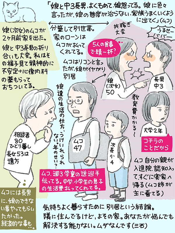 娘さんが「子ども3人(うち一人反抗期)抱え、母親の介護してるシンママ」になったら大変。相談者、ご自愛ください。