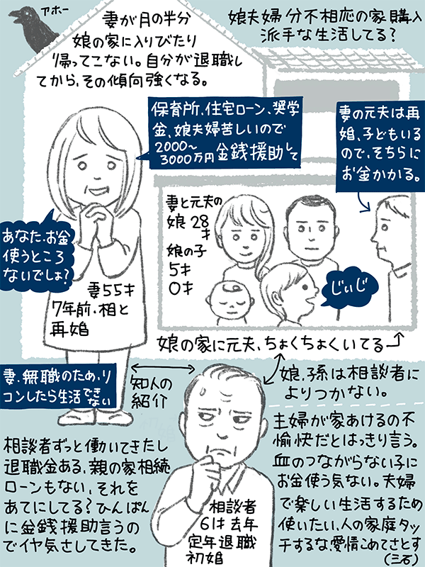 妻(7年前に再婚、相談者は初婚)が娘の家に月の半分入り浸り、帰ってこない。
